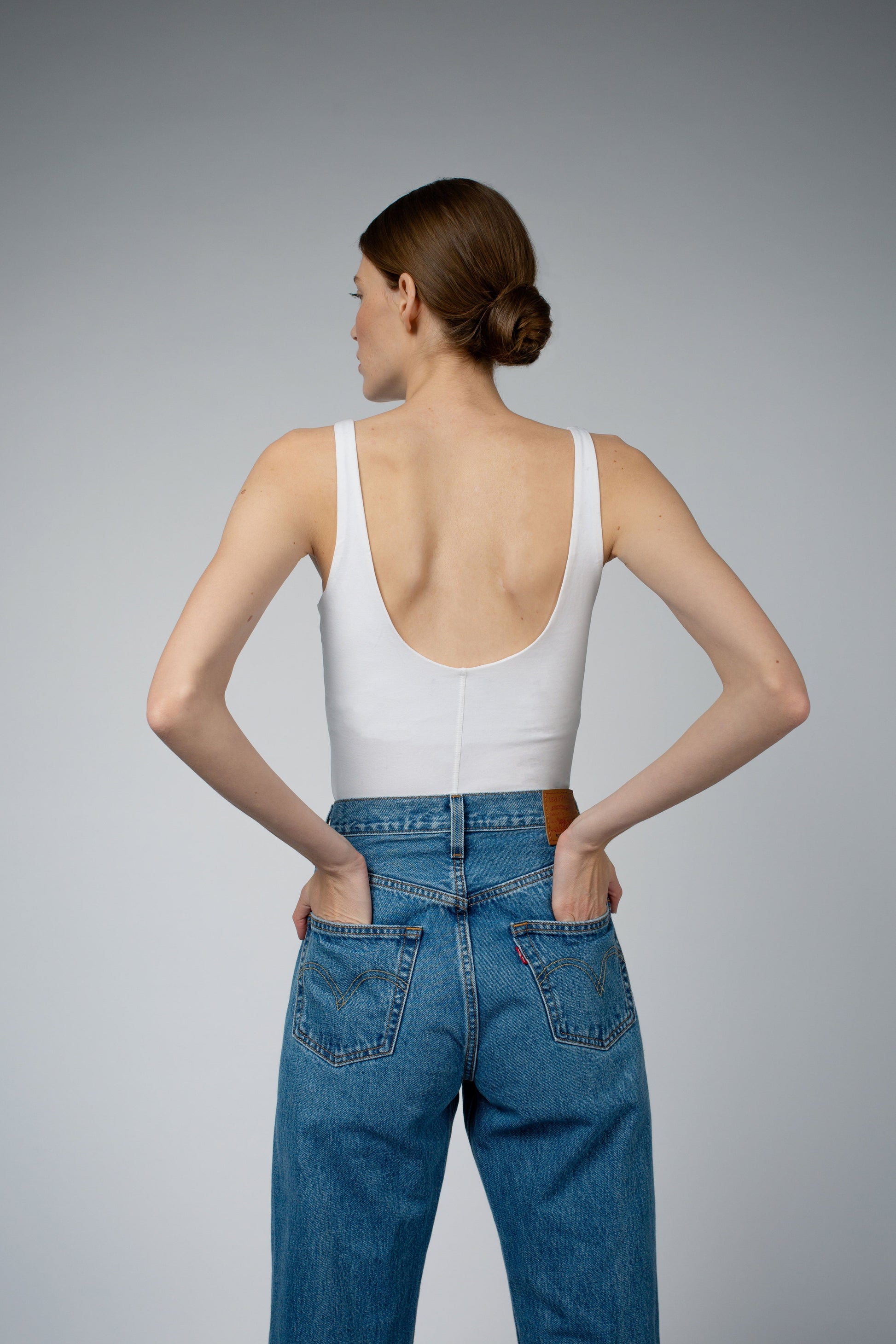 Made from GOTS certified organic cotton, the Ava tank top features a low back and built in bralette with elastic underbust edge. The tank is equally flattering when worn as an underpiece or on its own. Please note, our model is 5'8" (1.73 m) tall and wears size 0. The bralette may not offer enough support for all bust sizes, but the cut is bra friendly.